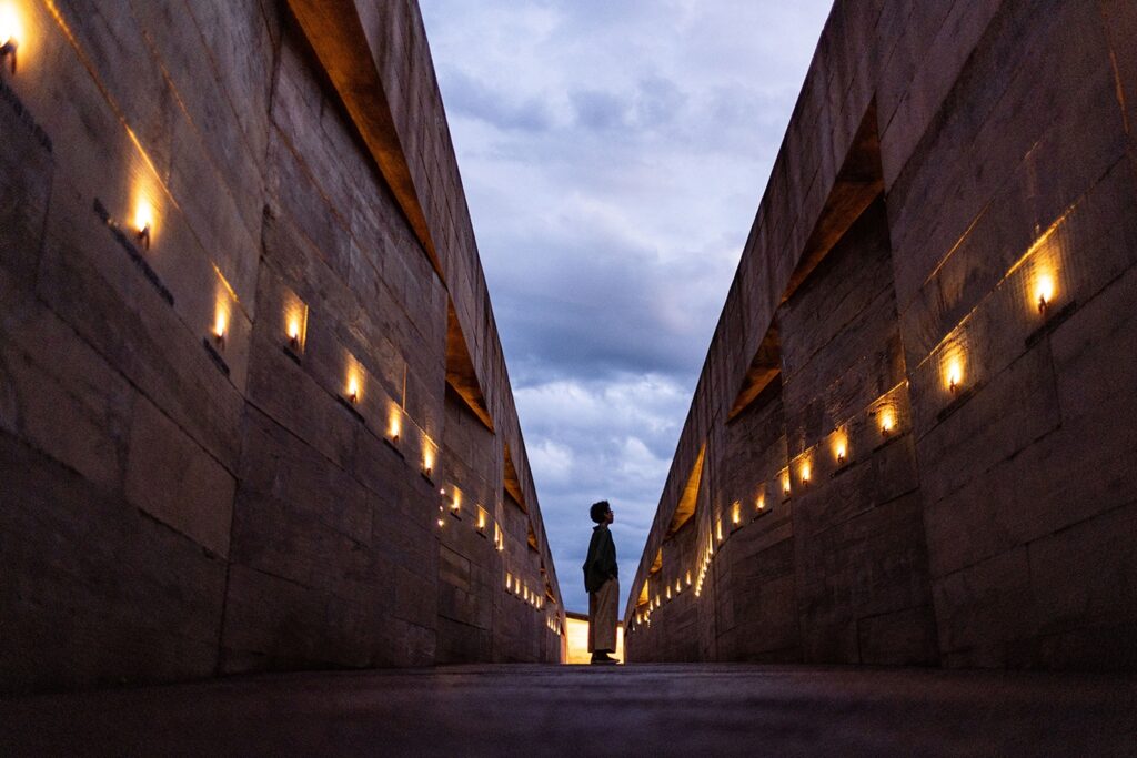 Light guides the journey, defines highlighted planes, areas of brightness and darkness. It is a tool to symbolize presence – representing the victims who have passed away, and to illuminate the other – who visits, feels and is transformed by this experience.