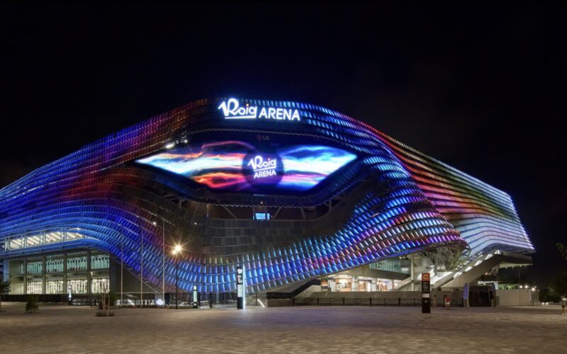 The Roig Arena media façade has been completed and is ready for the grand opening of this unique venue on September 6, 2025.