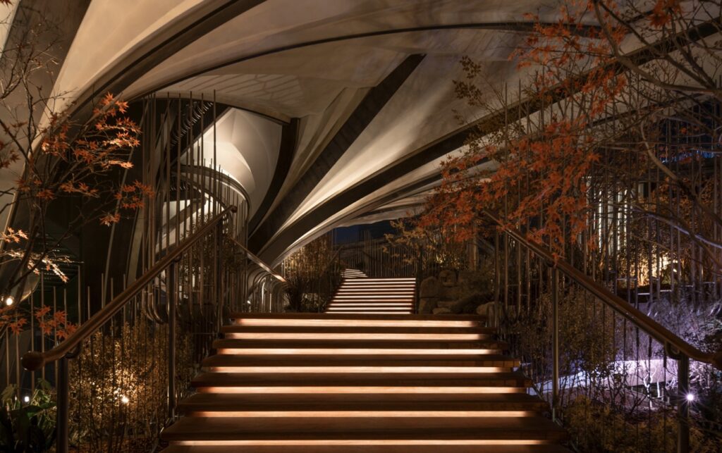 A serene, forest-like after dark experience celebrates the rich material qualities of the architecture and landscape in unexpected and magical ways.